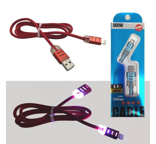 Cabo de dados Lightning IOS 3.1A com LED XLS CBO-8057-IOS
