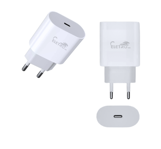 Carregador Completo Lightning / TIPO-C com Porta USB TIPO-C 50W Carregamento TURBO Eletromex EL-4005-PD