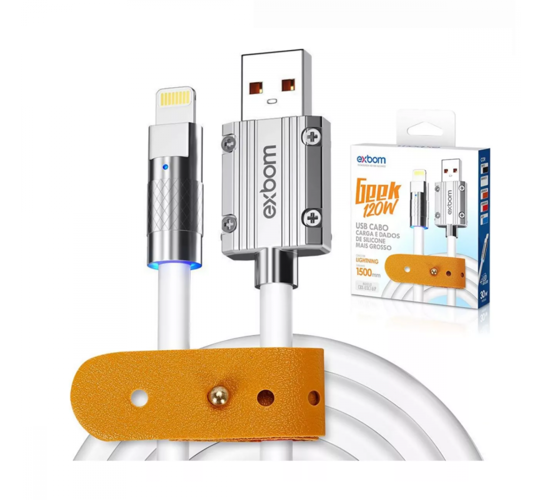 Cabo de dados Lightning Acabamento em Metal LED Exbom CBX-U3C16IP