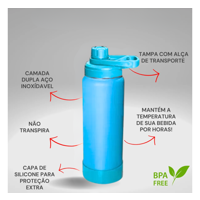 Garrafa Térmica Squeeze 900 ml Aço Inox Alça Canudo T&Z TZ-007 (***COR AZUL BEBÊ ESGOTADO)