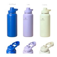 Garrafa Squeeze 950 ml Logo Stan. de Aço Inox Térmica com Alça Tampa Rosquear Vacuum (***COR ROSA E CREME - ESGOTADO)