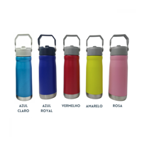 Garrafa Squeeze 650 ml LISA de Aço Inox Térmica com Canudo (***DISPONIVEL 01 PRETO, 01 BRANCO, 01 AMARELO E 01 VERMELHO)
