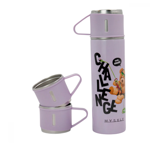 Garrafa Térmica Inox 500 ml com 3 Xícaras Estampa Urso GDR1015 (***DISPONÍVEL 8 LILÁS, 9 CIANO E 06 ROSA)